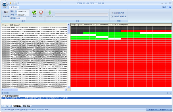 通用燒寫軟件FlashSprit用於完成ECU的程序、數據燒寫工作。實際使用時,通過ECTEK USBCAN卡、CAN通訊線、USB 線連接通訊。